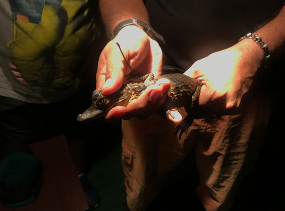 We went on a piranha fishing tour in the Amazon river in the afternoon and an alligator spotting tour in the evening. After dinner, we took pictures of the milky way.